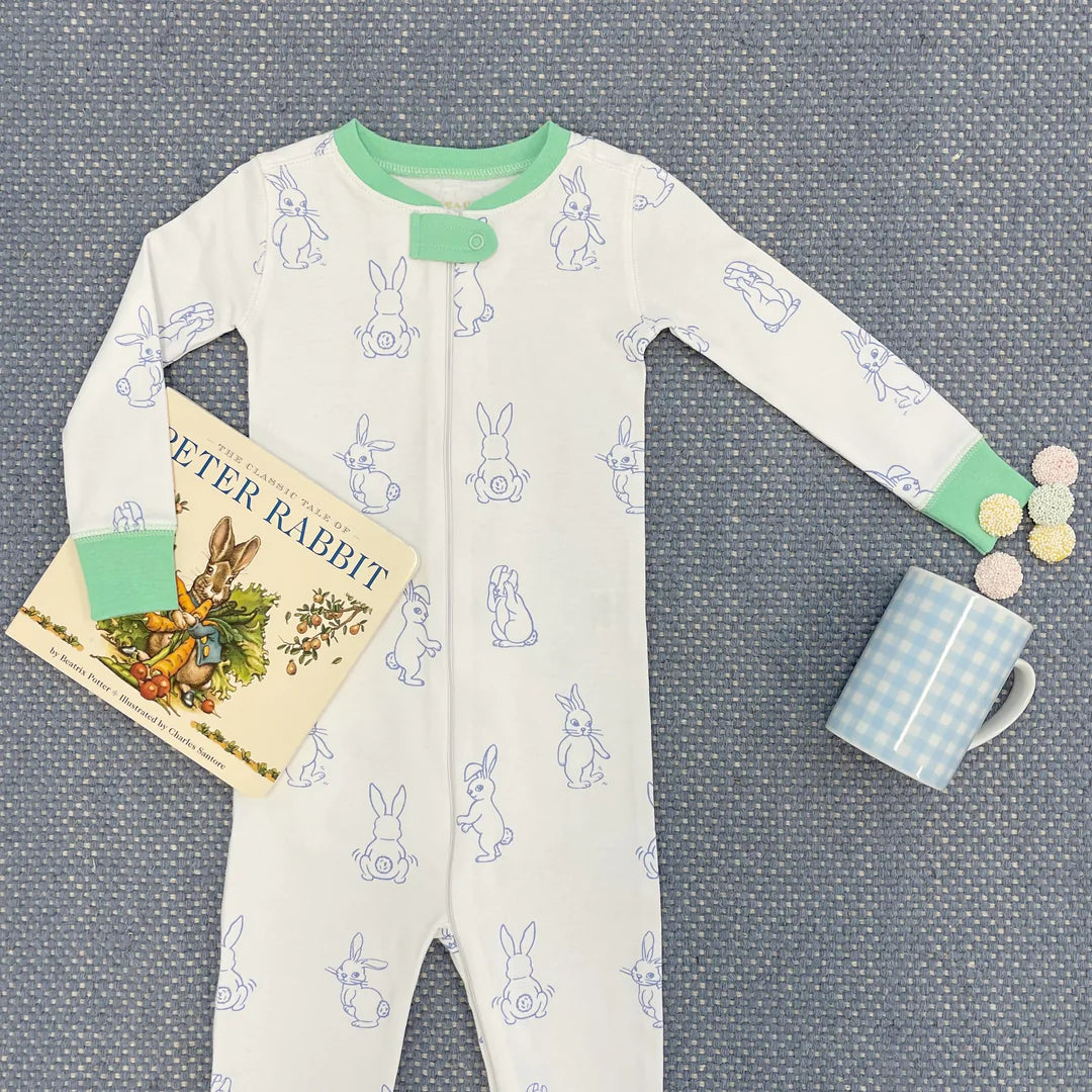 Your little gent will love 'hip-hopping' off to bed in this adorable Knox's Night Night! Featuring Boardwalk Bunny with Grace Bay Green, this pajama is just as cute as it is cozy!